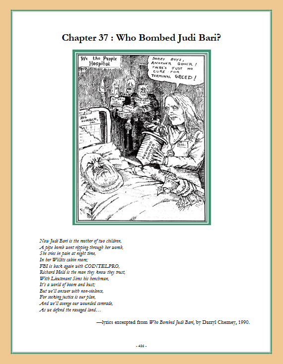 —lyrics excerpted from Who Bombed Judi Bari, by Darryl Cherney, 1990.